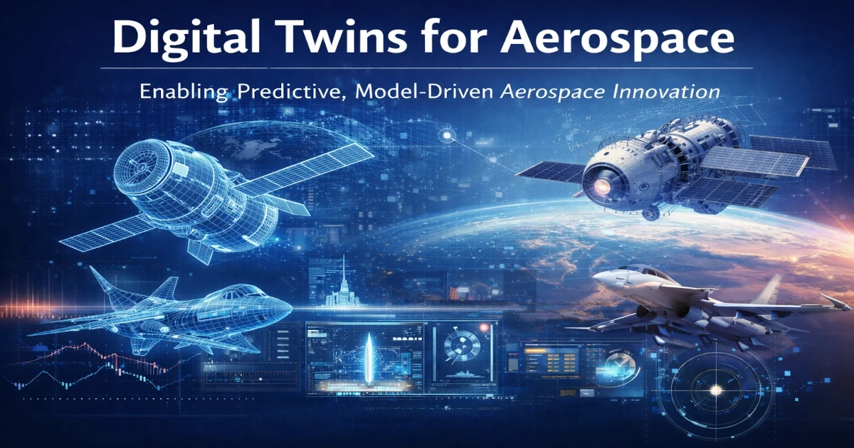 Digital twins are the core for aerospace's shift toward predictive, model-driven, and lifecycle-oriented engineering and operations. By linking high-fidelity simulation with real-time sensor data and operational context, digital twins provide continuously updated virtual representations of physical assets and processes, from individual components to entire aircraft fleets, production systems, and operations. This convergence of models, real-time telemetry, and analytics accelerates the transition from document-centric workflows to integrated digital thread environments, where design intent, configuration, performance, and sustainment are connected throughout long operational lifecycles.